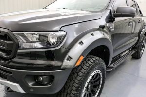 They also added some exterior accents that give it a Ford Ranger Raptor look, Front “FORD” Grille, black running boards, Addictive Desert Design Chase Rack, and “Ranger Baja” Graphics.