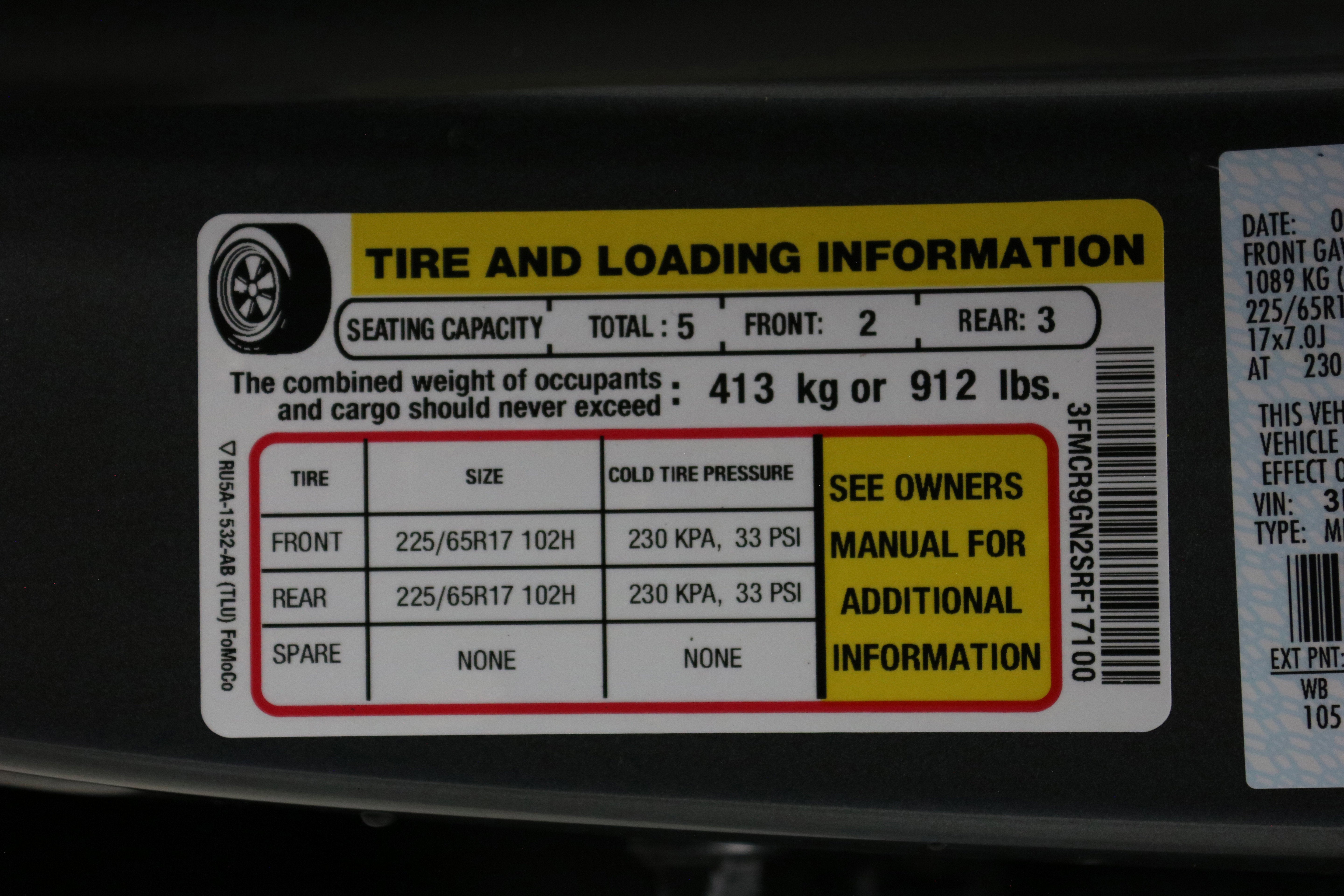 - Front Tire Size: P225/65HR17