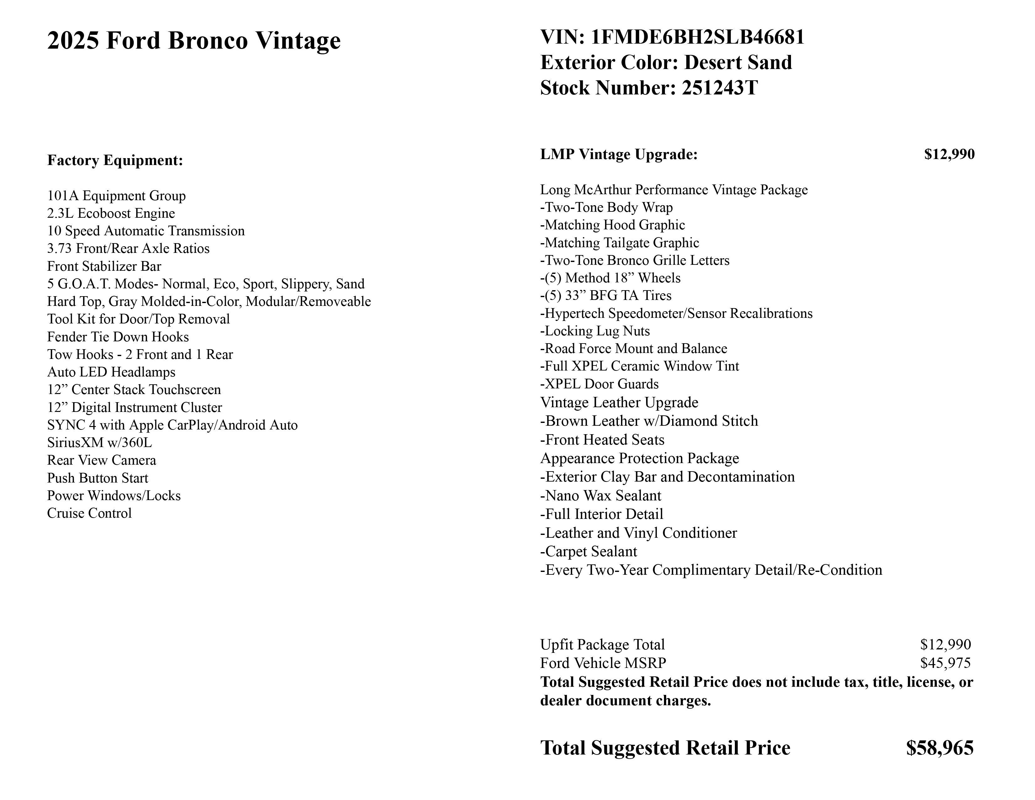 2025 Ford Bronco LMP Vintage