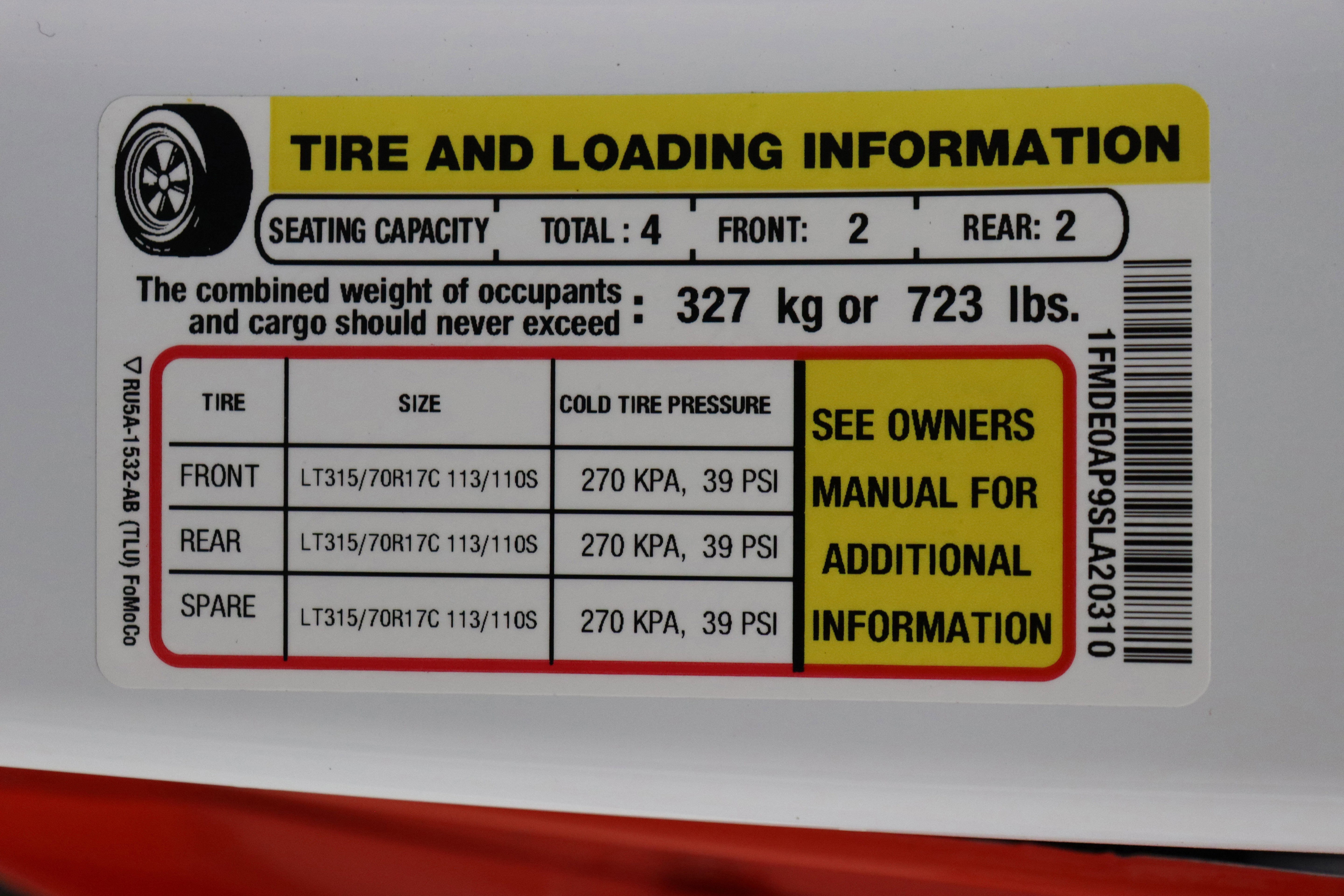 - Rear Tire Size: LT315/70R17