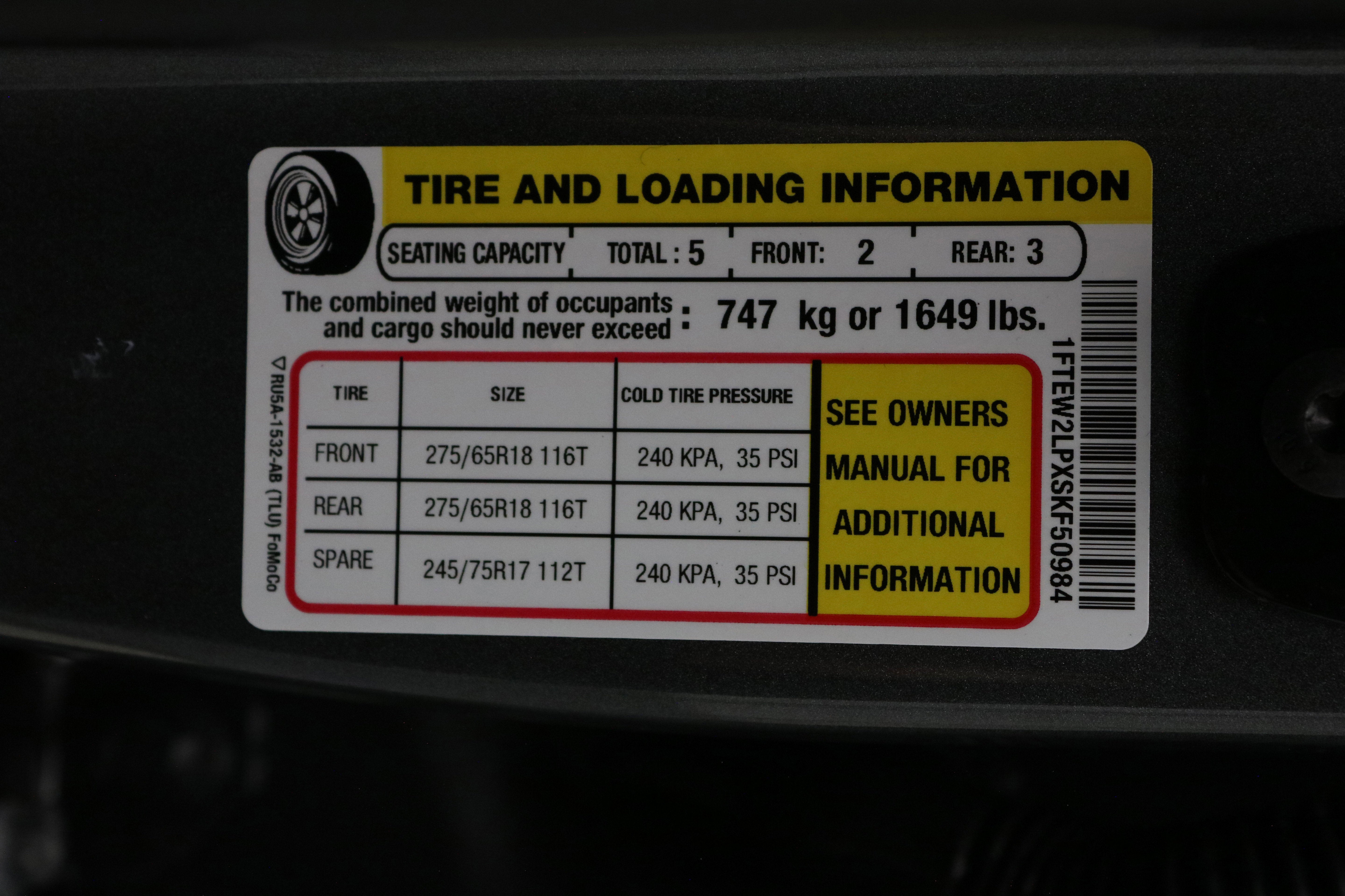 - Front Tire Size: P275/65SR18