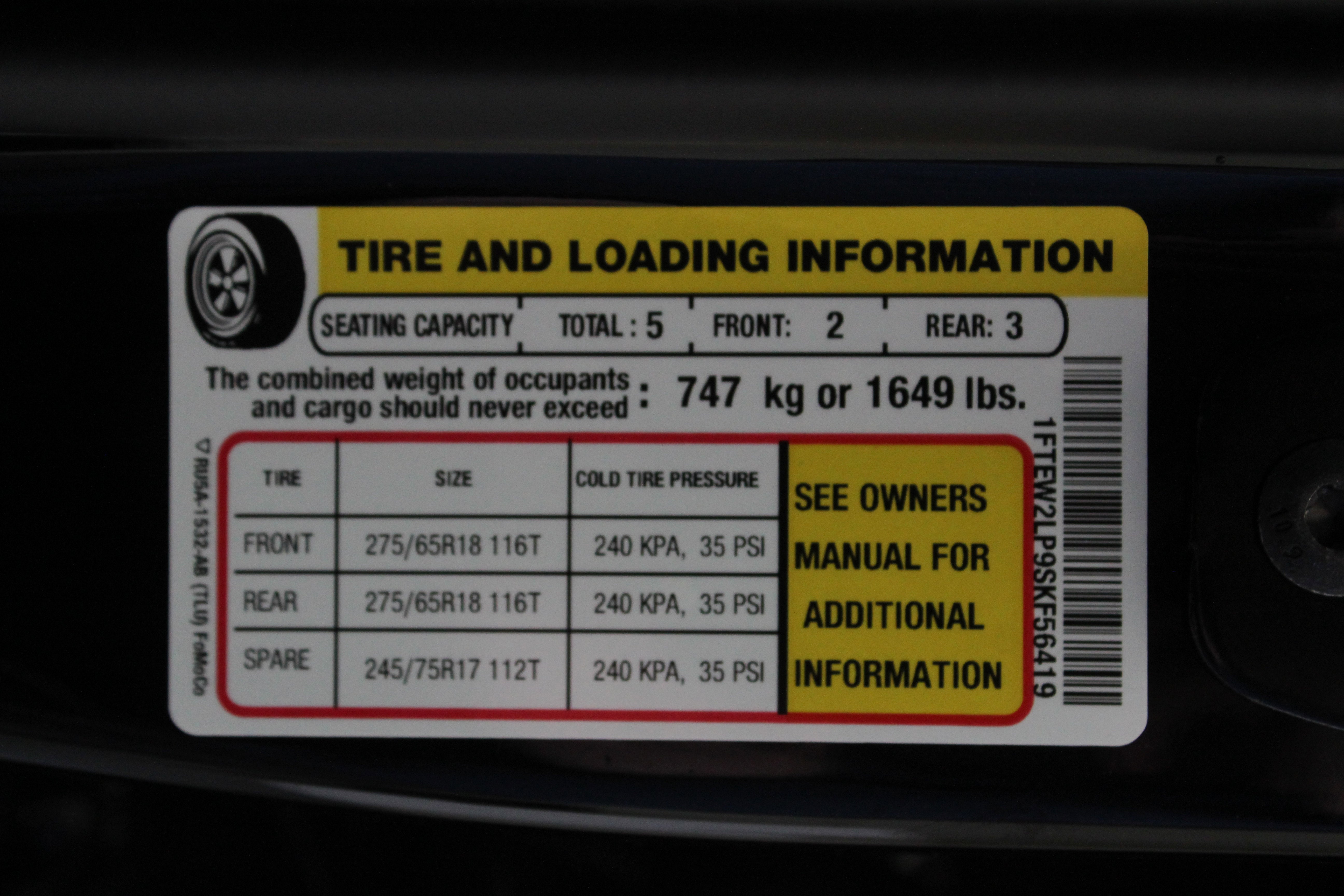 - Front Tire Size: P275/65SR18