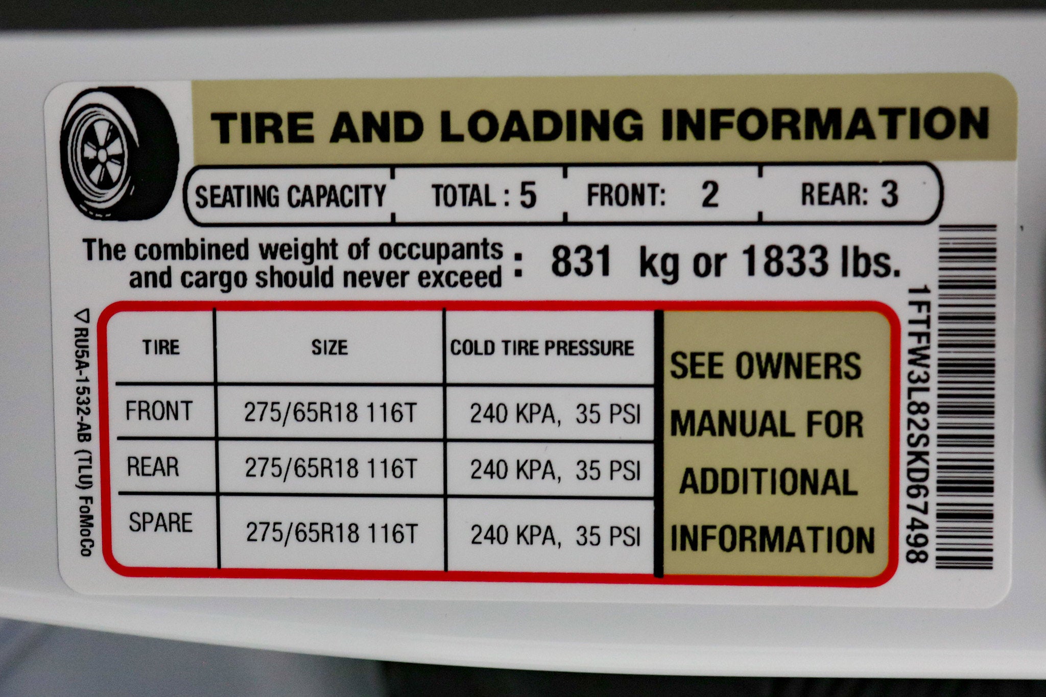 - ENGINE: 3.5L V6 ECOBOOST -inc: auto start-stop technology 3.31 Axle Ratio GVWR: 7 100 lbs Payload Package
