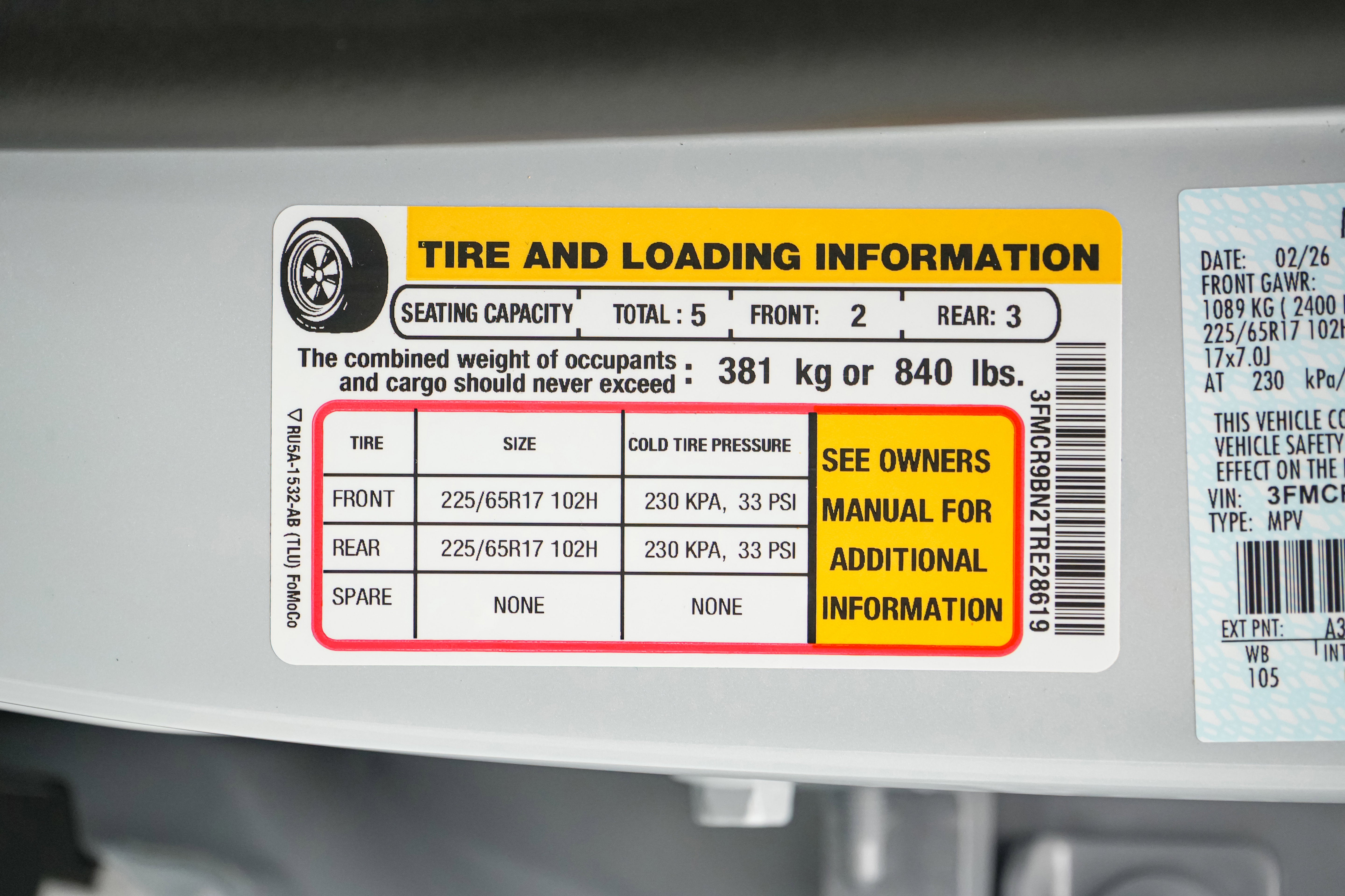 - Cargo Volume to Seat 2 (ft³): 32.5