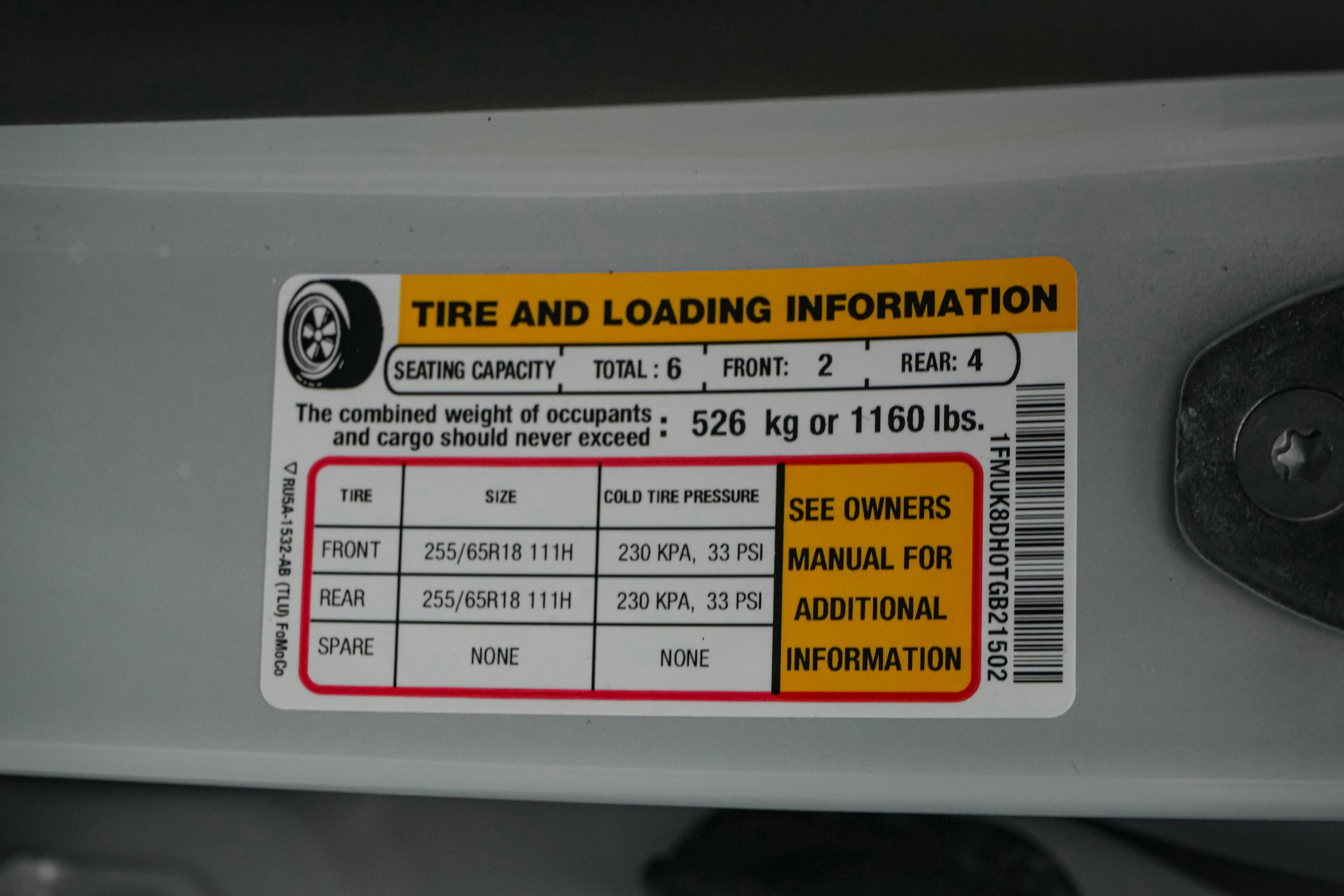 - Front Tire Size: P255/65HR18