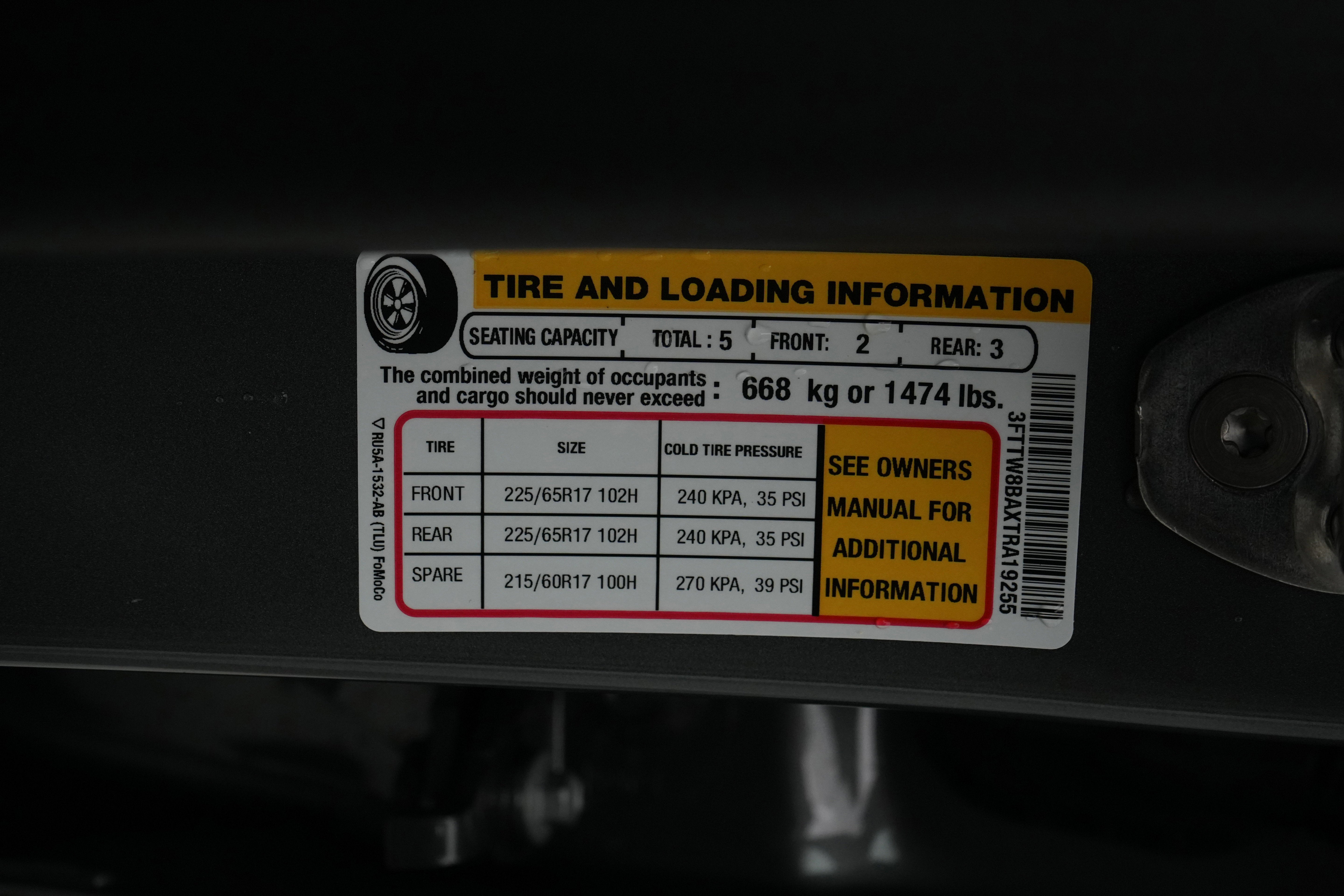 - Front Tire Size: P225/65HR17