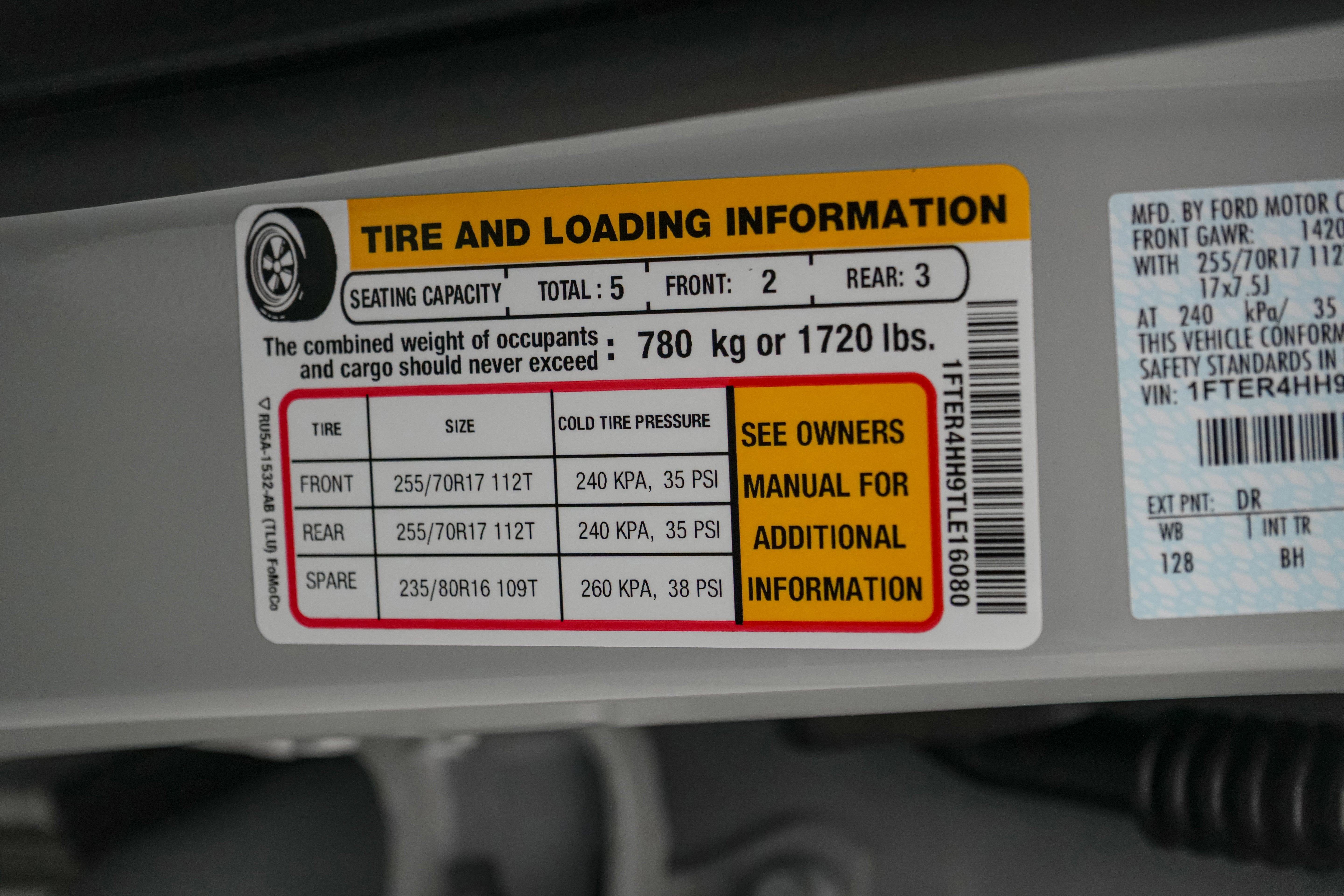 - Spare Tire Size: Full-Size