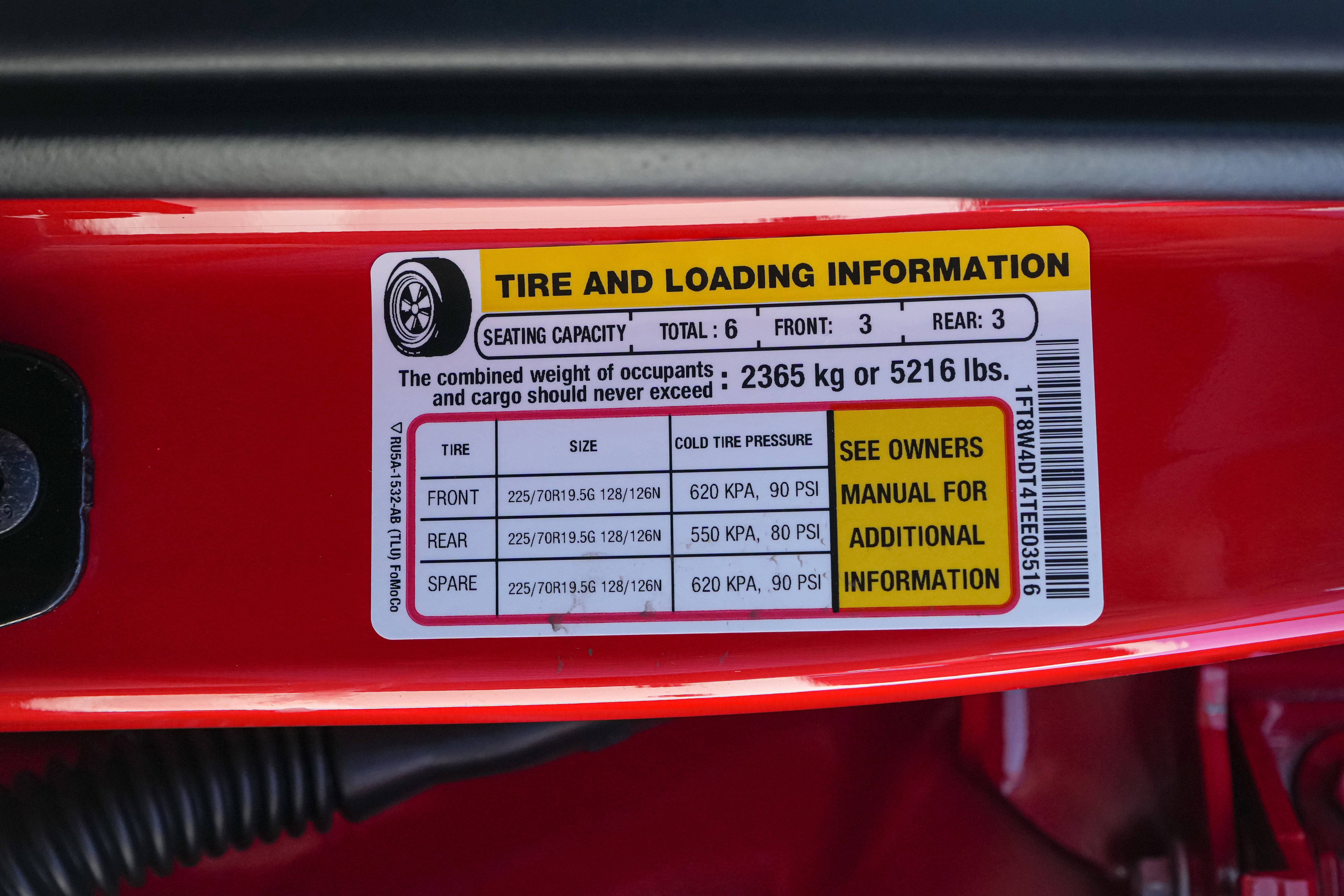 - Rear Tire Size: LT225/70SR19.5