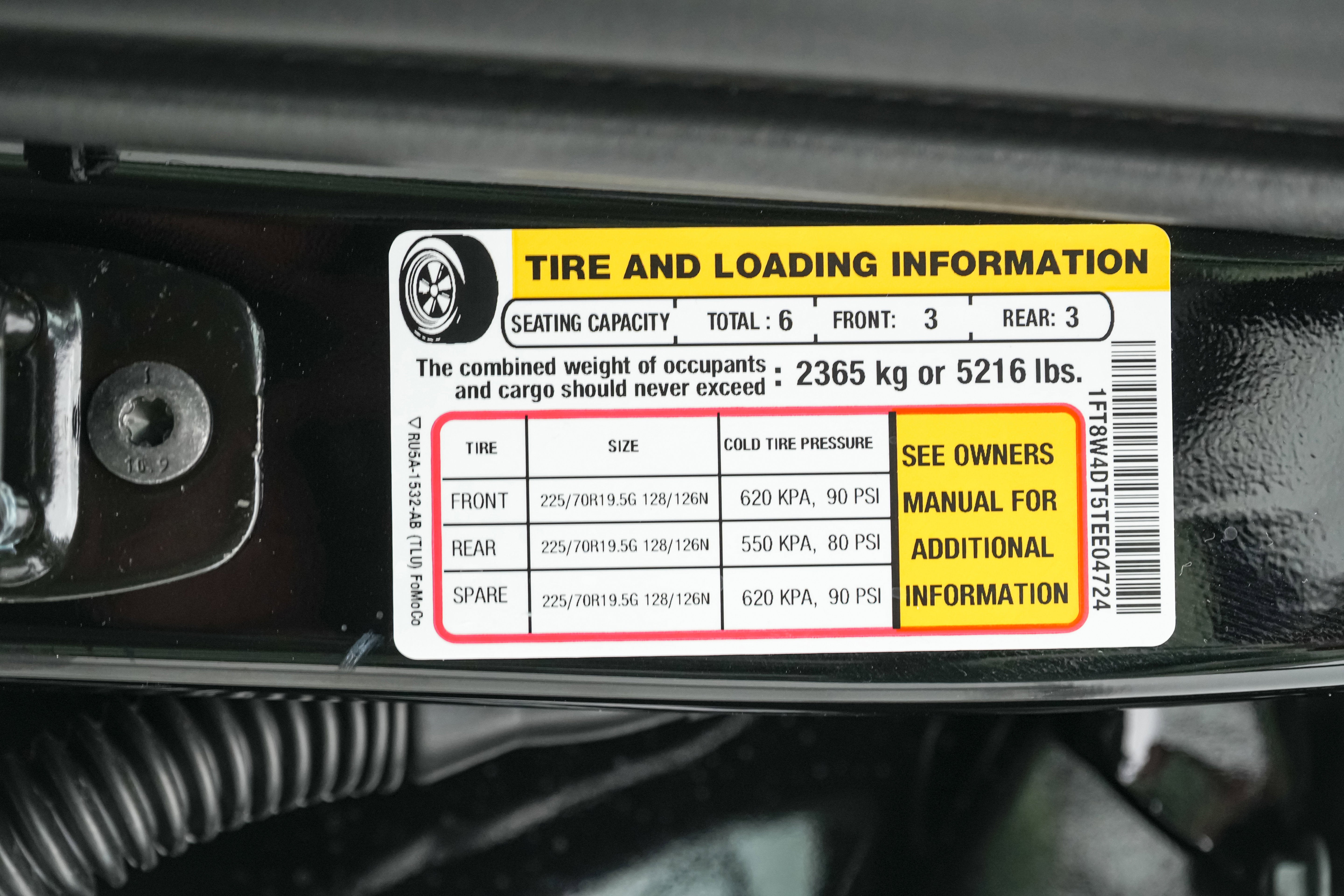 - Rear Tire Size: LT225/70SR19.5
